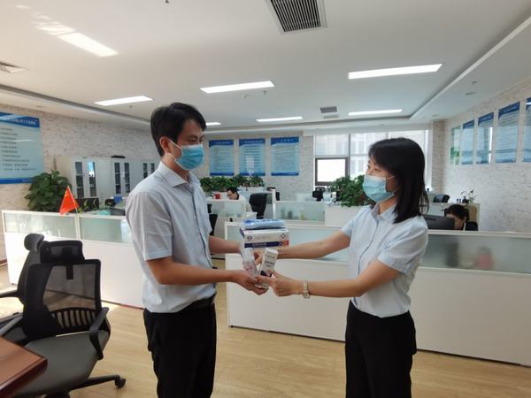 一、開展防疫物資儲備及發(fā)放工作。8月5日,在公司領導的關懷下,根據(jù)員工數(shù)量和客戶流量,集中儲備了一批包含醫(yī)用口罩、免洗手液、酒精消毒液等在內的防疫物資,同時按部門分批次進行發(fā)放,確保人手一份、隨時可用、隨手可取,堅決夯實打贏這場疫情防控戰(zhàn)的物資基礎。