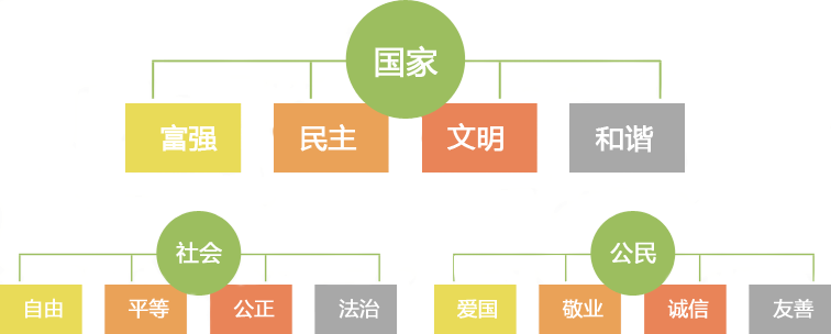 社會(huì)主義核心價(jià)值觀包含12個(gè)詞,共24個(gè)字,分別從國(guó)家、社會(huì)、公民個(gè)人三個(gè)層面提出社會(huì)主義核心價(jià)值觀的價(jià)值目標(biāo)、價(jià)值取向和價(jià)值準(zhǔn)則。